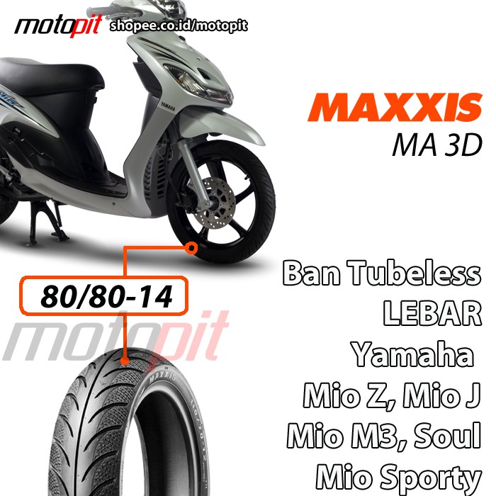 Biar makin sporty paling gampang sih ubah bagian kaki-kaki bradsis. Ban Motor MAXXIS Tubeless 8090-14 MA3DN Mio. Lantas berapa beda ukuran ban dan pelek dengan model yang belum dilengkapi dengan ban tubeless.